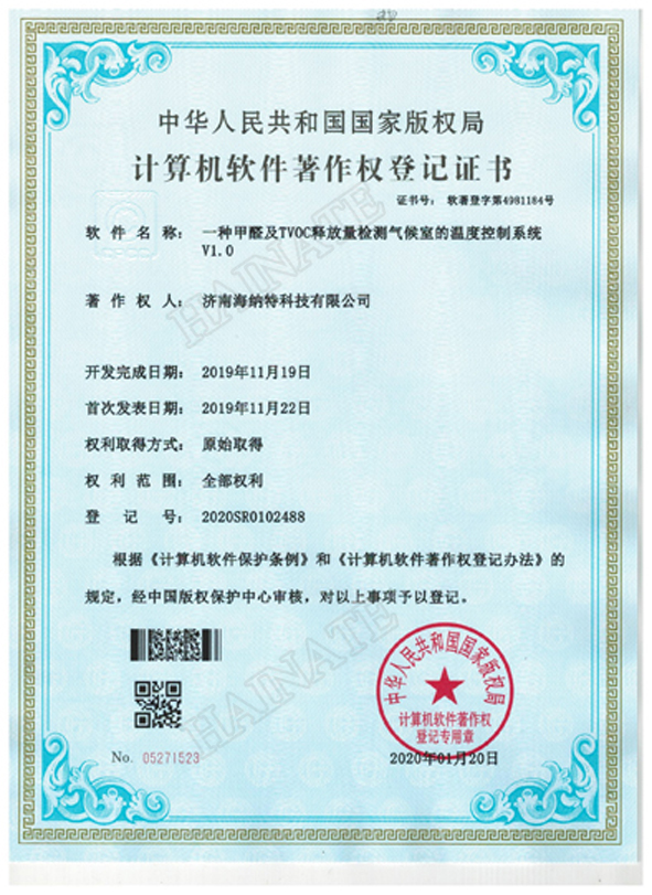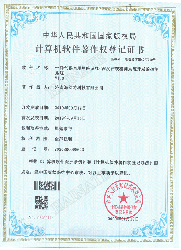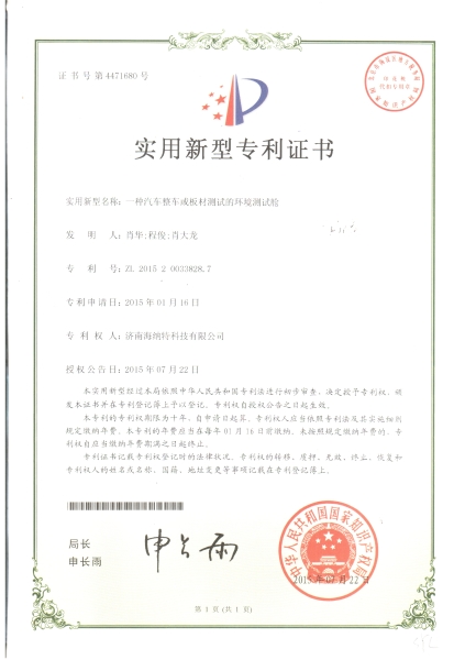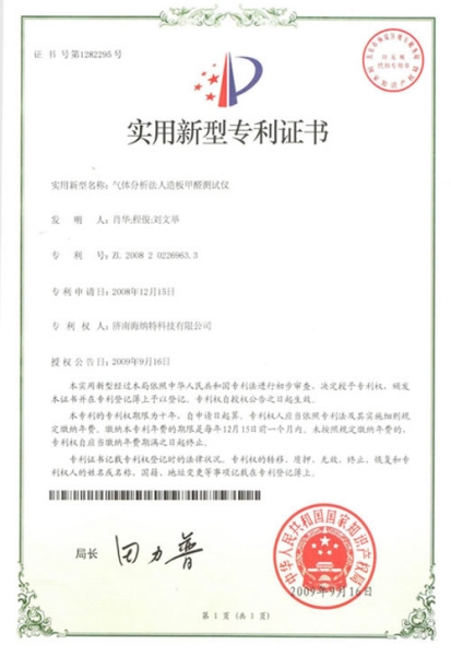 - 氣體分析法人造板甲醛測試儀專利證書